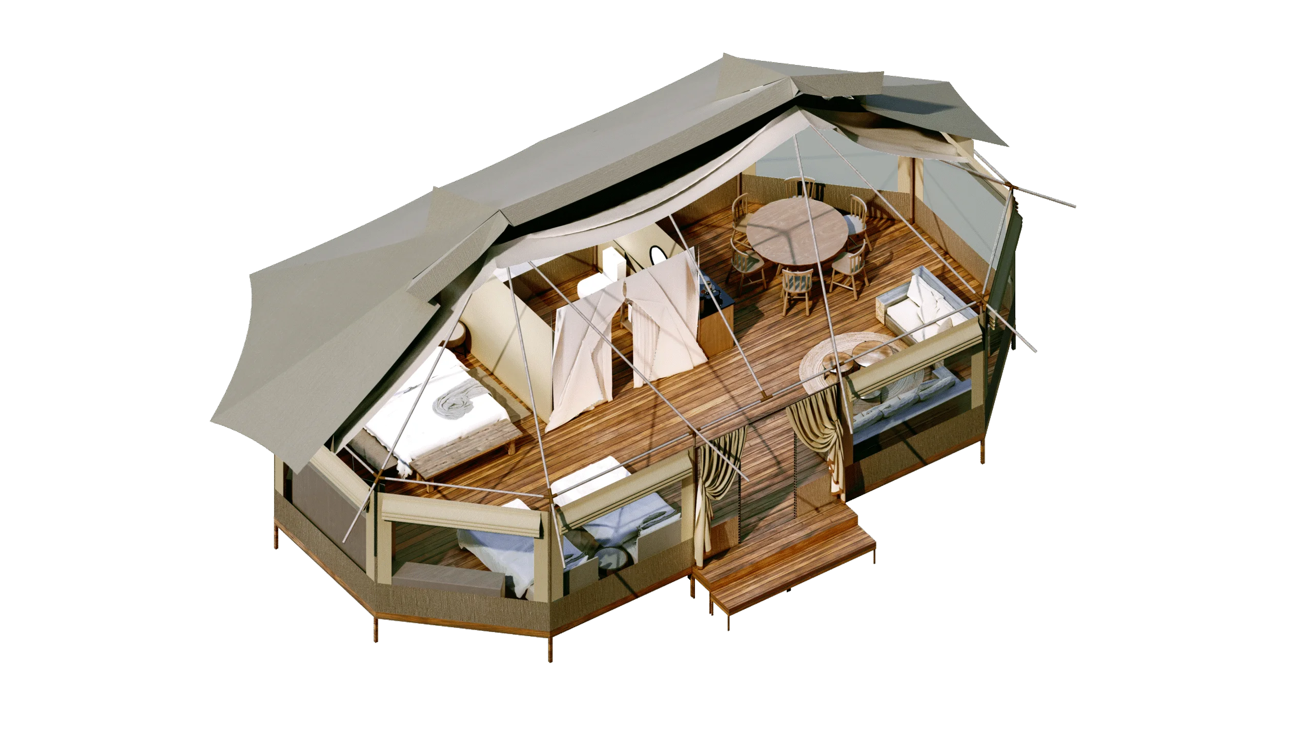 Monipuolinen laajennusosa, joka mukautuu saumattomasti Mandala-telttasi kaarteisiin ja lisää arvokasta tilaa nukkumiseen, oleskeluun tai luoviin monikäyttöisiin pohjaratkaisuihin. Pitkäaikaiseen integrointiin suunniteltu moduuli sulautuu saumattomasti teltan arkkitehtuuriin luoden yhtenäisen ilmeen ja tarjoten ympärivuotista toimivuutta premium-glamping-ympäristöissä.