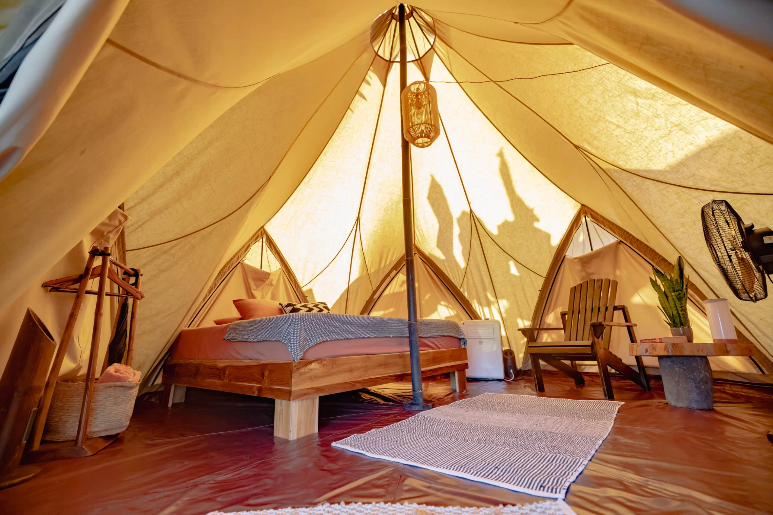 A cozy, intimately curved sleeping nook designed to integrate beautifully with Mandala tents. The Cocoon envelops guests in comfort, offering an inviting retreat that enhances feelings of privacy and warmth. Ideal for creating romantic hideaways or peaceful meditation spaces within your luxurious glamping experience.