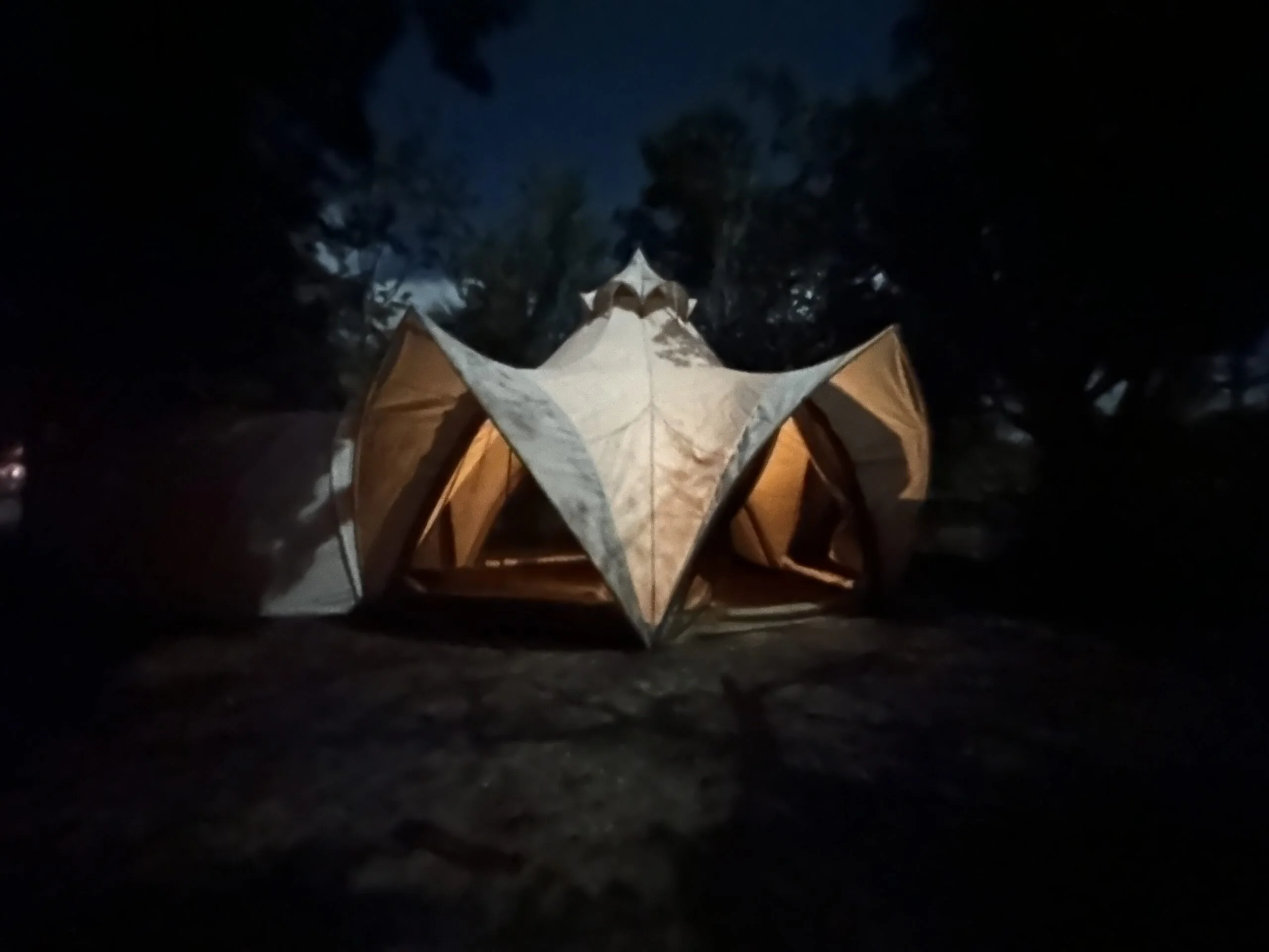 An exterior sun-shield that dramatically reduces solar heat gain by intercepting sunlight before it reaches the roof canvas. Installed with a ventilated gap, it allows hot air to escape, keeping interiors noticeably cooler and extending the life of the underlying fabric. Its natural tone and texture blend effortlessly with surrounding landscapes, making it a functional and aesthetic upgrade for any Mandala tent.