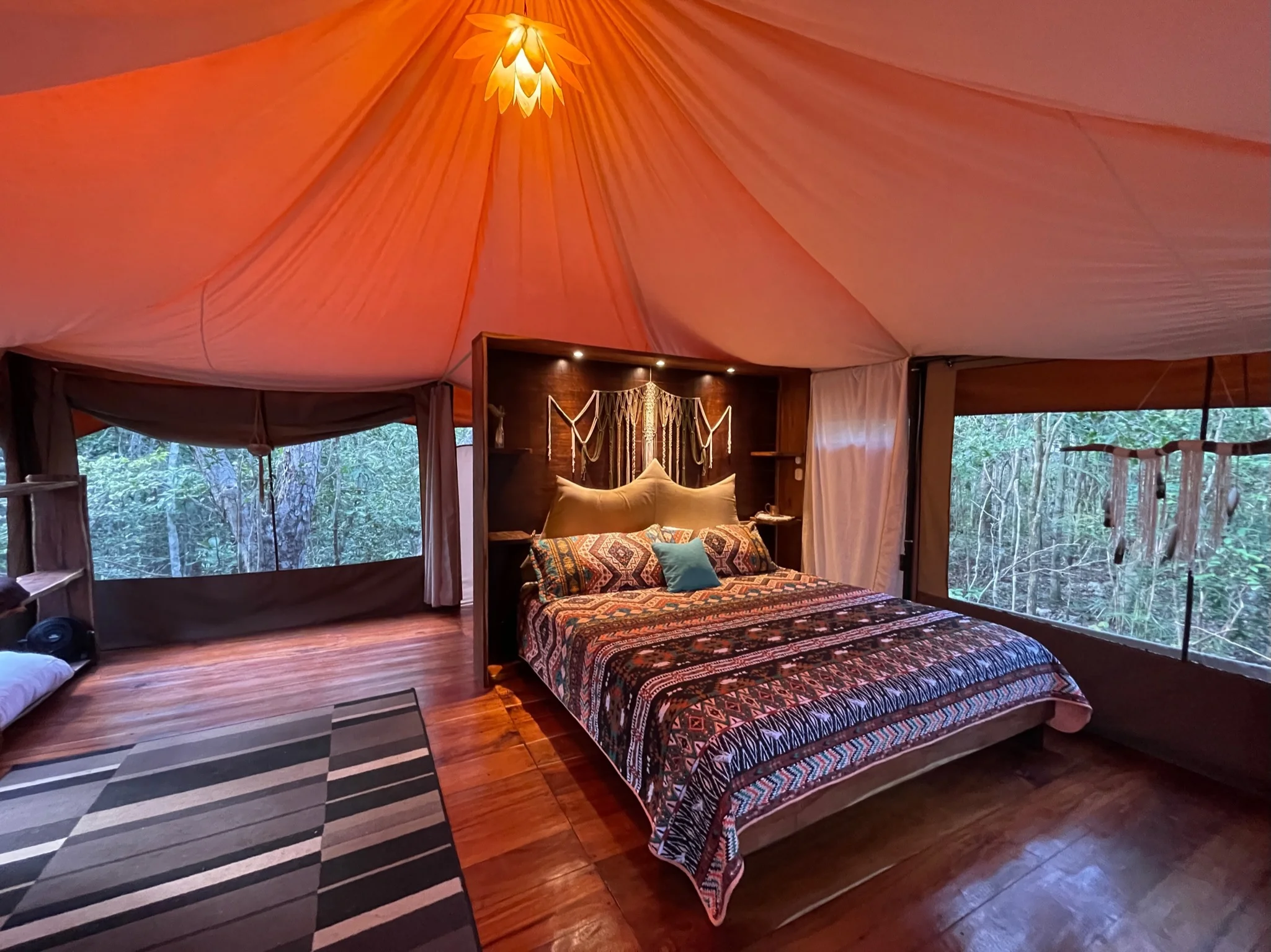 We combine passive‑stack cross ventilation with large mosquitonet wall panels so your guests stay cool, comfortable—and connected to the wild: